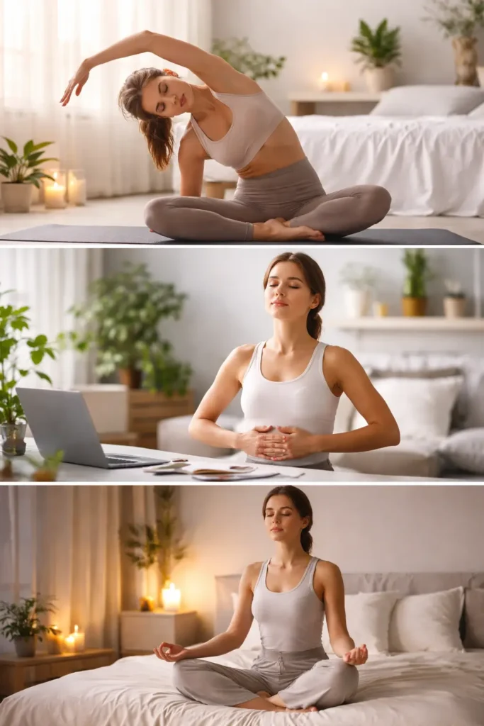- Try to do 10 minutes of gentle yoga stretches in the morning.